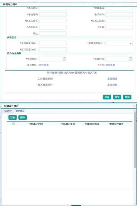 點擊待提交和被駁回的電力用戶,可以修改其綁定期限。新增的用戶可以修改用戶基本信息和用電單元信息。點擊【撤銷】可以取消此綁定申請,如果是綁定已有的用戶則此申請取消,如果是新增的用戶,撤銷時將同時將新增的用戶也刪除。如下圖所示: