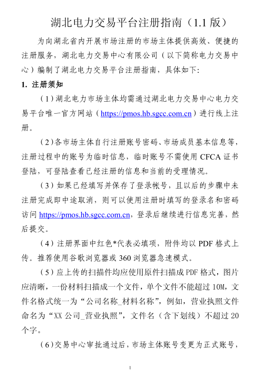 附件 1-《湖北電力交易平臺注冊指南(1.1 版)》