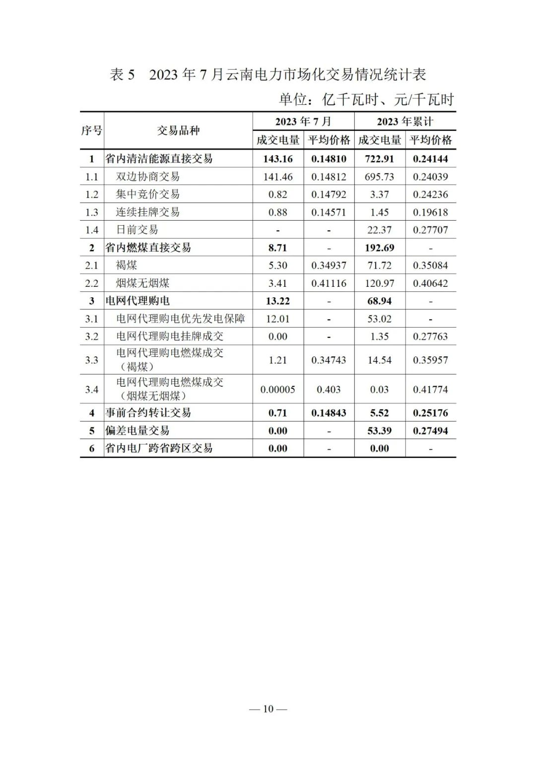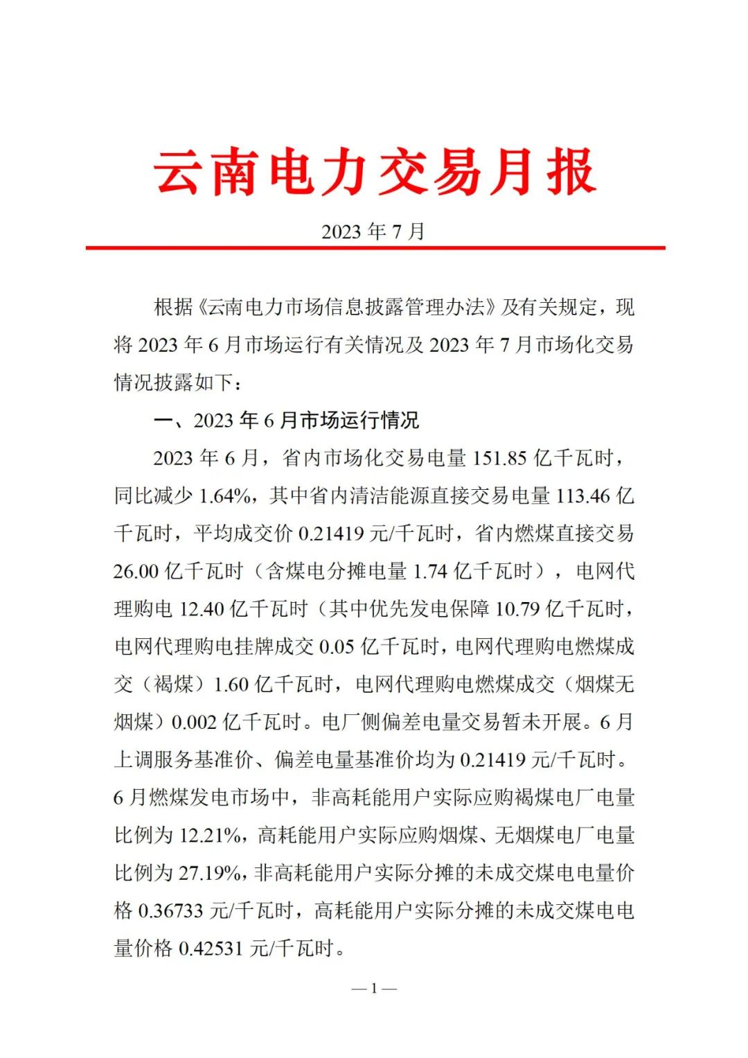 昆明電力交易中心:云南電力交易月報(2023年7月)
