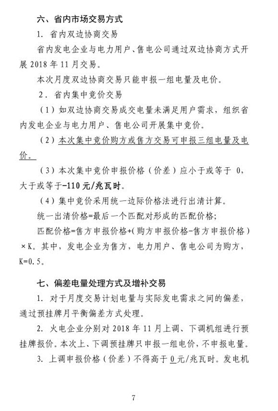 湖南電力交易中心日前發(fā)布了《關(guān)于2018年11月電力市場交易的公告》,交易時間24-29號,本月祁韶直流送電11億千瓦時,價差3.38分/千瓦時無變化。本月交易公告與之前不同的是,本月開始火電下調(diào)報價開始限價,最低報價3.3分/千瓦時。之前市場交易中,出現(xiàn)電廠下調(diào)價格報0價的情況,不符合市場經(jīng)濟規(guī)律,本月交易公告就及時對此現(xiàn)象做出了針對性的調(diào)整。