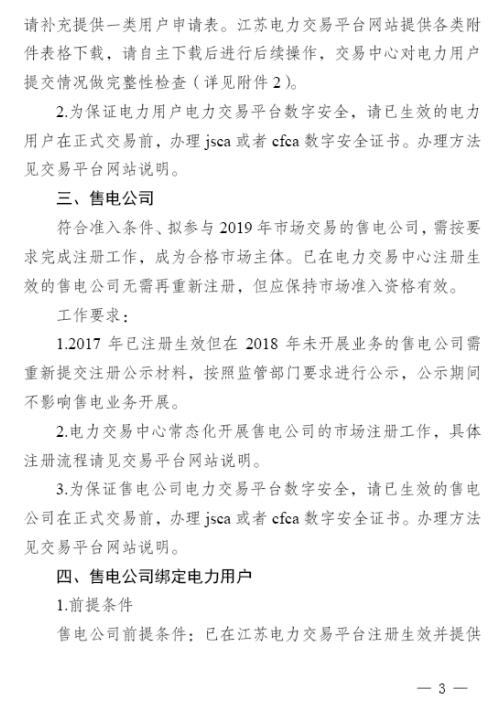 江蘇11月5日起開(kāi)展2019年市場(chǎng)主體注冊(cè)及綁定工作 售電公司提供足額履約保函才可綁定電力用戶(hù)