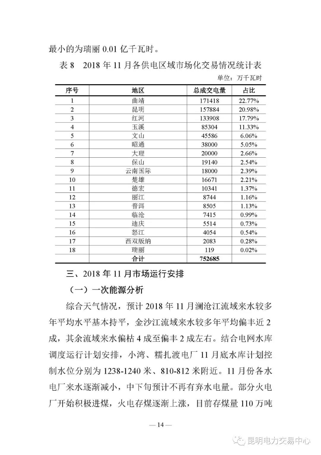 云南電力交易月報(2018年11月)