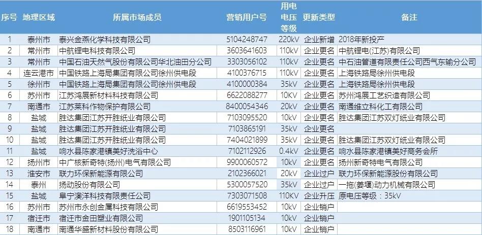 關(guān)于2018年江蘇電力市場(chǎng)準(zhǔn)入用戶(hù)名單第十一次更新的公告