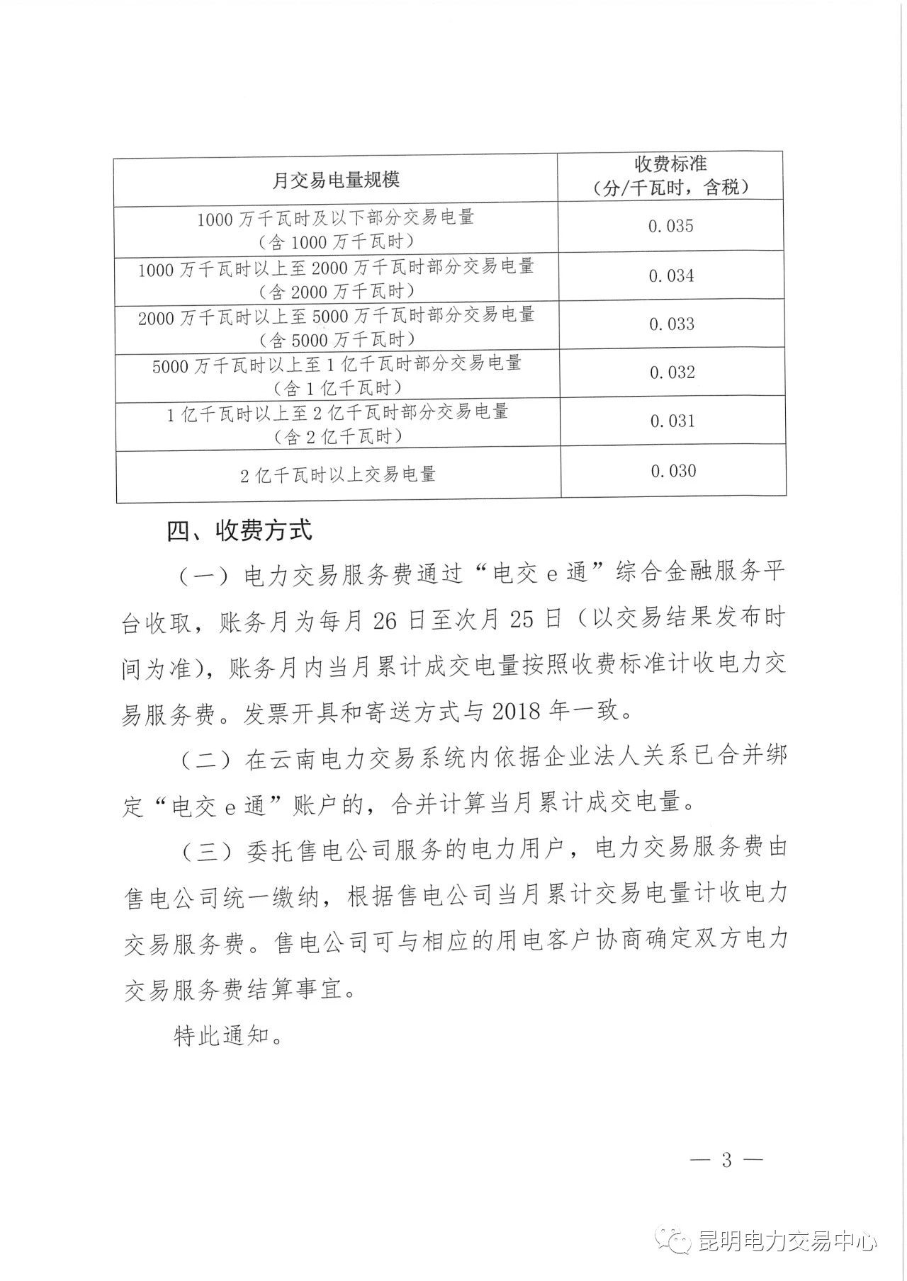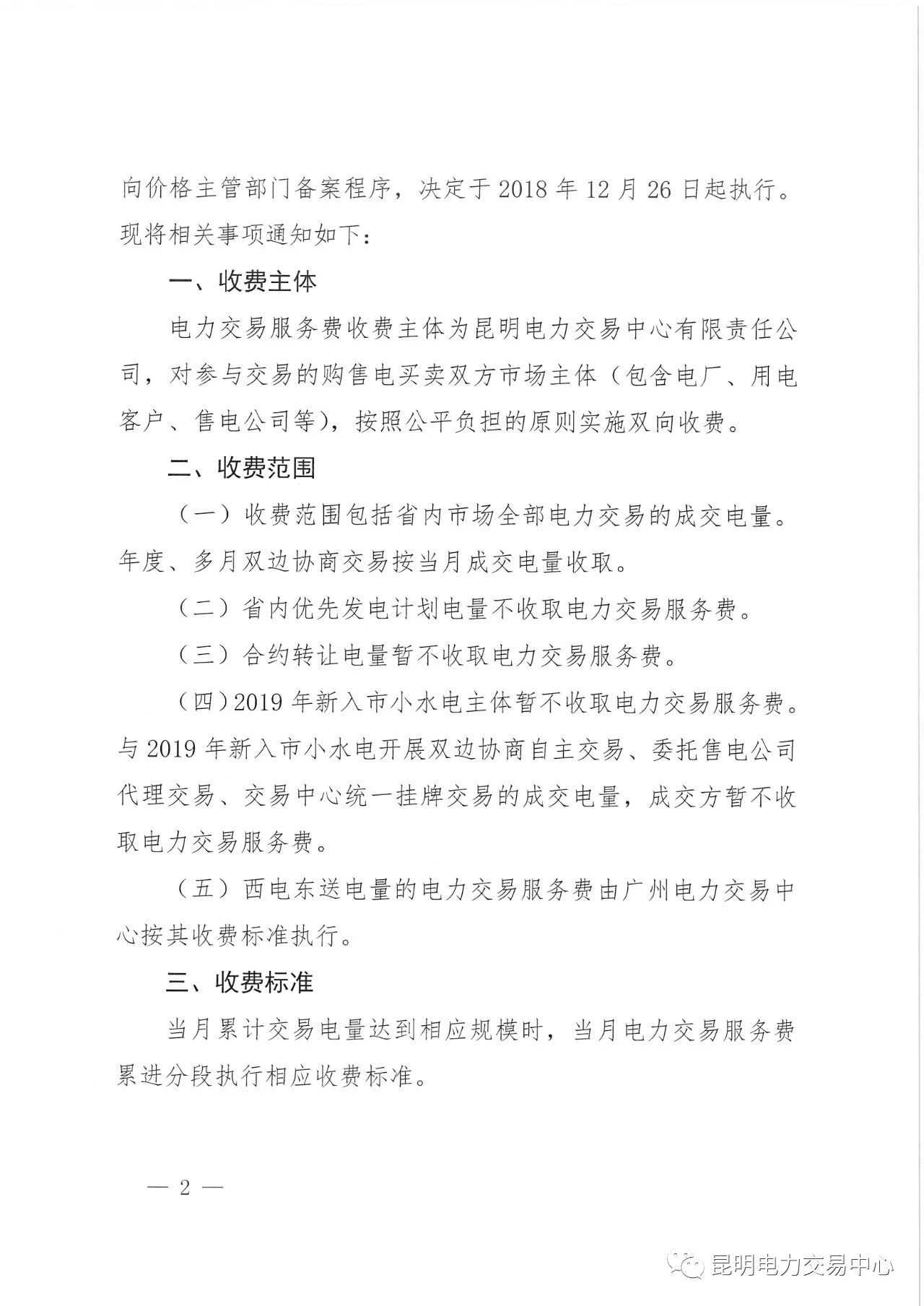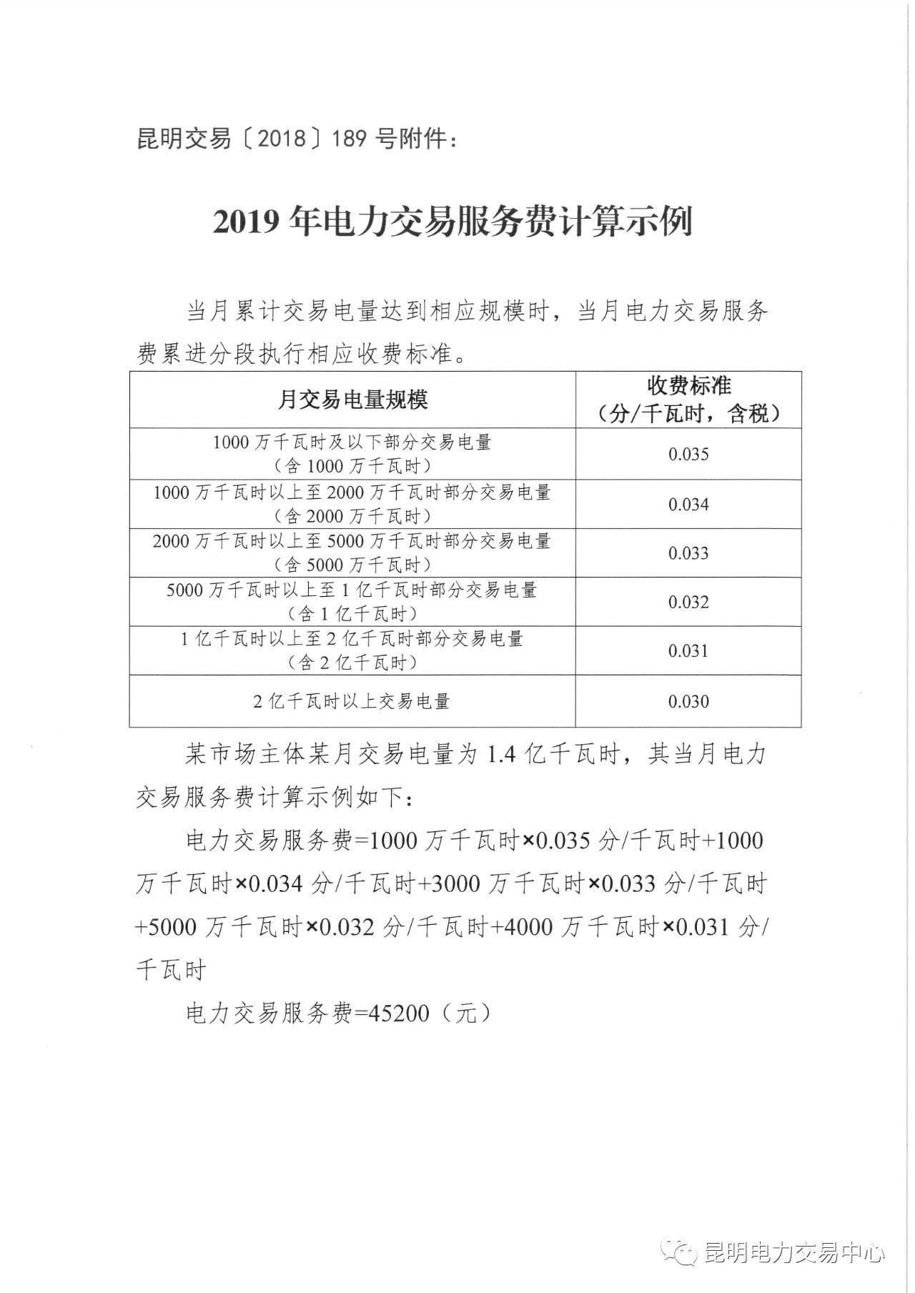 昆明電力交易中心日前發(fā)布了《關(guān)于公布2019年電力交易服務(wù)費(fèi)收費(fèi)標(biāo)準(zhǔn)的通知》
