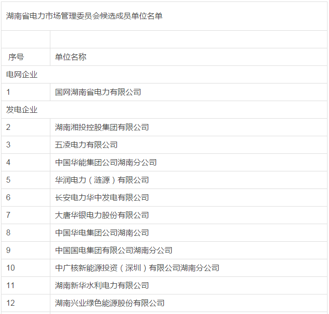 湖南省電力市場管理委員會候選成員單位公示名單:33家售電公司入列