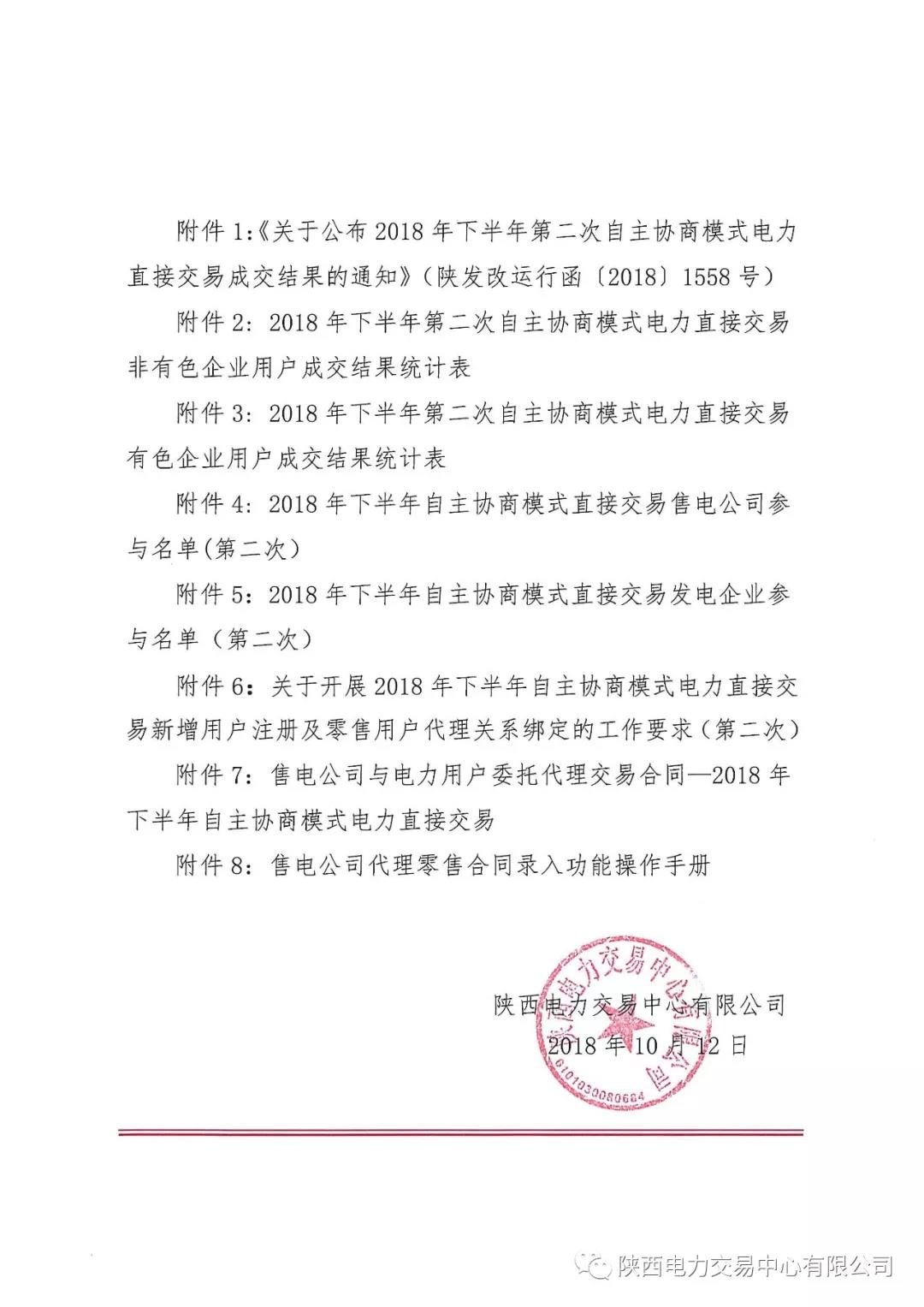 陜西電力交易中心有限公司關(guān)于開展陜西省2018年下半年自主協(xié)商模式第二次電力直接交易的通知