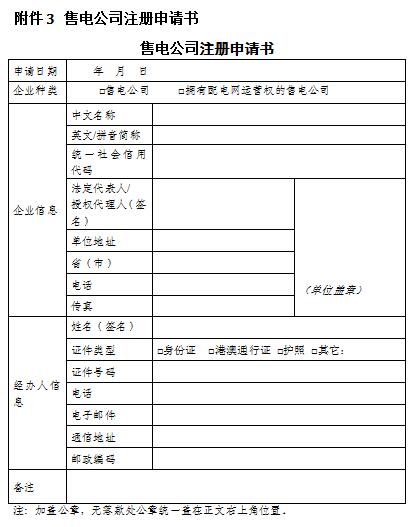 2、售電公司注冊(cè)申請(qǐng)表