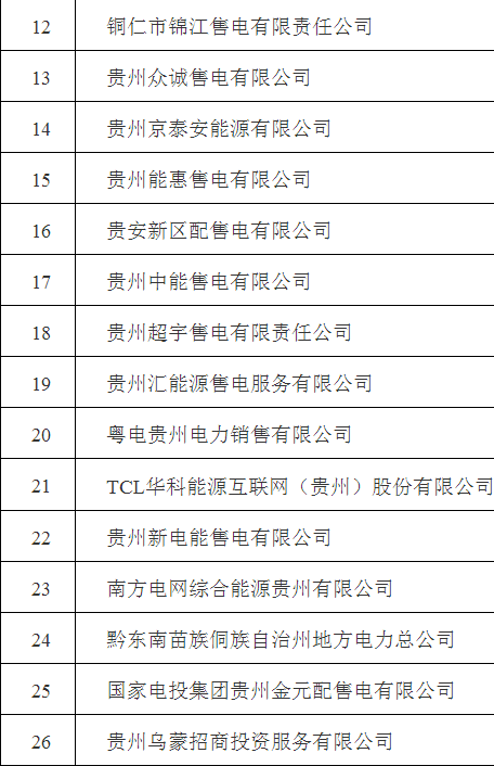 貴州省能源局日前發(fā)布了61家售電公司備案手續(xù)公告。