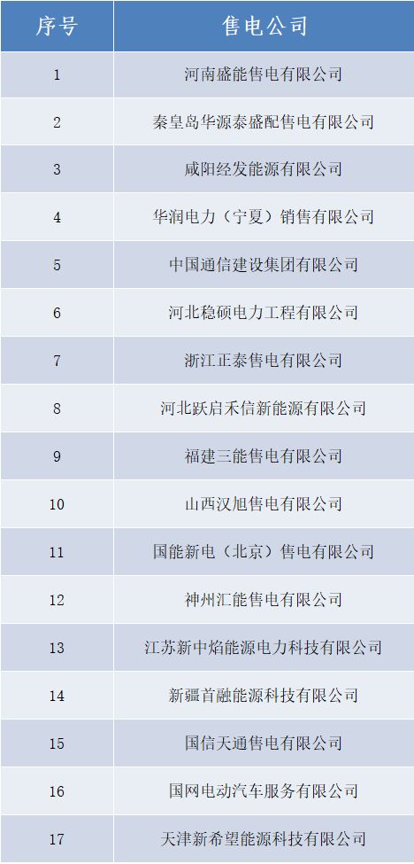 山西新增北京推送的17家售電公司