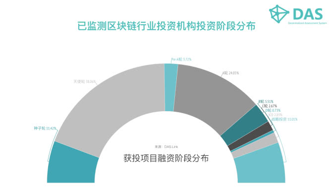 與傳統(tǒng)VC、PE投資不同的是,Token Fund的投資出手風格更為直接。區(qū)塊鏈行業(yè)由于有更快捷的退出渠道,往往不需要進行多輪的融資。種子輪、天使輪、A輪、戰(zhàn)略投資等早期階段獲得Token Fund的概率較其他階段更大。其中區(qū)塊鏈投資機構投資天使輪的項目占38.06%,是投資最多的階段。