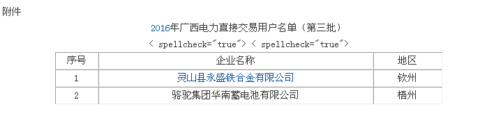 廣西:關(guān)于2016年電力直接交易準入名單( 第三批)的公示