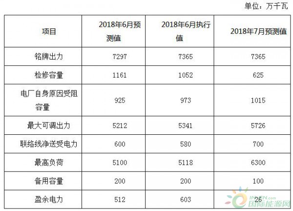 6月份發(fā)電量達(dá)到238 05億千瓦時(shí),聯(lián)絡(luò)線受電量34 09億千瓦時(shí),用電量272 14億千瓦時(shí),發(fā)電最高負(fù)荷3303萬千瓦。預(yù)計(jì)2018年7月份,發(fā)電量239億千瓦時(shí),聯(lián)絡(luò)線受電量40億千瓦時(shí),用電量279億千瓦時(shí)。