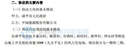中閩能源簽訂福建漳平90MW風電場項目協(xié)議 總投資約8.5億