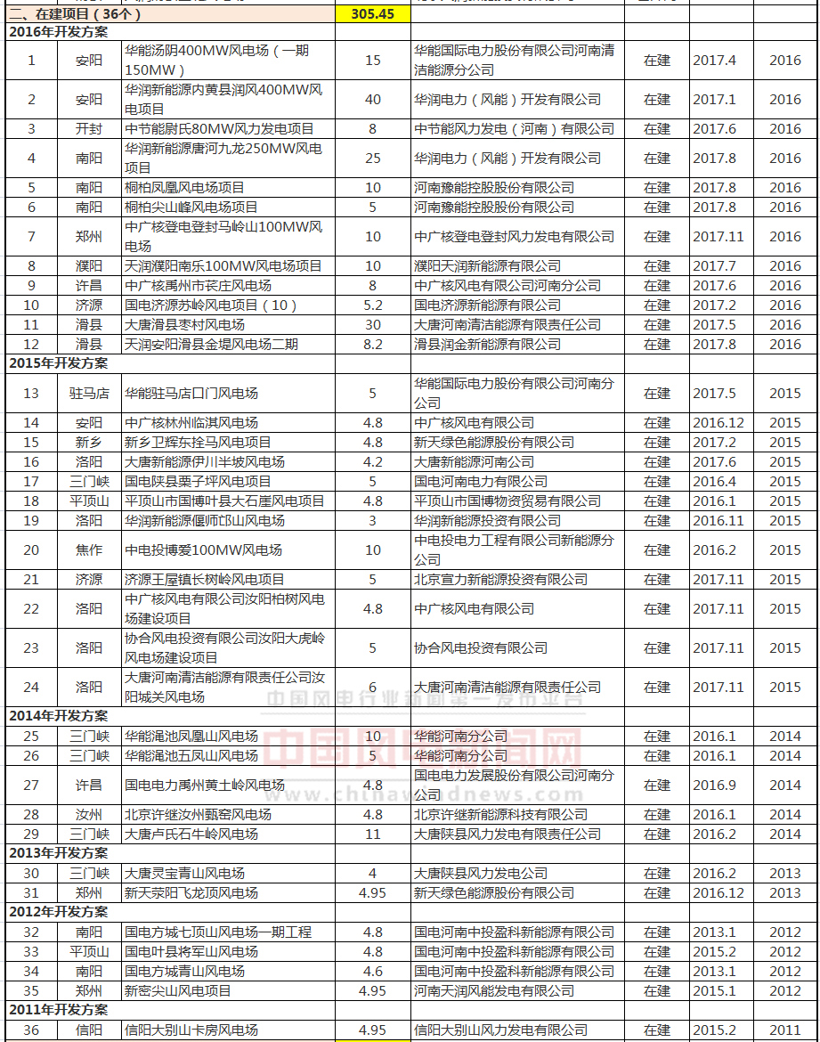 2016年開發(fā)方案項(xiàng)目未按計(jì)劃開工的包括洛陽市5個(gè),總規(guī)模27萬千瓦;平頂山市4個(gè),總規(guī)模19.4萬千瓦;南陽市3個(gè),總規(guī)模18.8萬千瓦;濮陽市2個(gè),總規(guī)模57.6萬千瓦;三門峽市2個(gè),總規(guī)模13.7萬千瓦;許昌市2個(gè),總規(guī)模14.95萬千瓦;安陽市1個(gè),規(guī)模5萬千瓦;開封市1個(gè),規(guī)模4.95萬千瓦;駐馬店市1個(gè),規(guī)模3.4萬千瓦;汝州市2個(gè),總規(guī)模9.8萬千瓦(詳見附件2)。