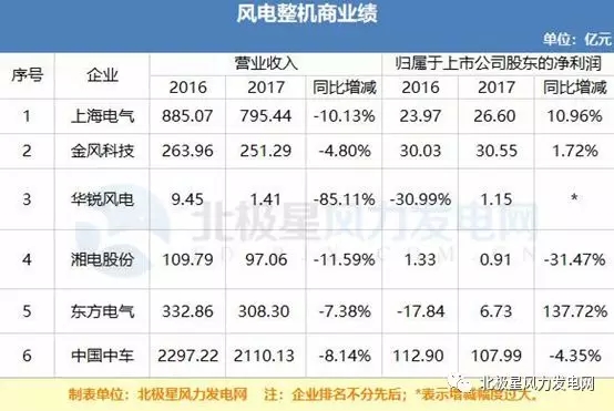 相較于風(fēng)電開發(fā)商而言,2017年中國風(fēng)電整機商業(yè)績則不甚理想,營業(yè)收入全部呈下降趨勢,但同時,也有2家風(fēng)電整機商實現(xiàn)扭虧為盈,華銳風(fēng)電自是不必多說,通過轉(zhuǎn)讓股權(quán)、解決質(zhì)量問題等,在公布年報盈利的同時,就已申請“摘帽”,并已于昨日起正式撤銷風(fēng)險警示并復(fù)牌,股票簡稱由“*ST 銳電”變更為“ST 銳電”;股票代碼不變。而東方 電氣 則是扭轉(zhuǎn)了連續(xù)三年利潤下滑的被動局面。