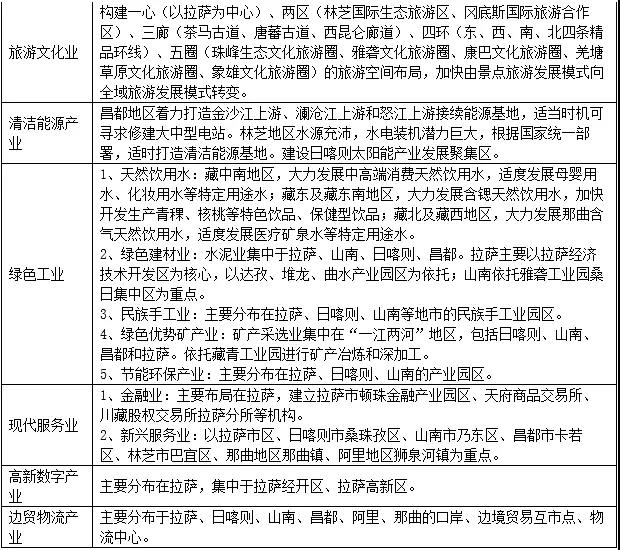 多點(diǎn):充分挖掘昌都、林芝、山南、那曲、阿里等地資源稟賦特征,大力發(fā)展當(dāng)?shù)靥厣a(chǎn)業(yè),形成特色產(chǎn)業(yè)發(fā)展集聚區(qū)。