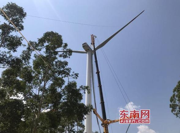 工程建設(shè)者正抓緊吊裝風(fēng)機(jī)