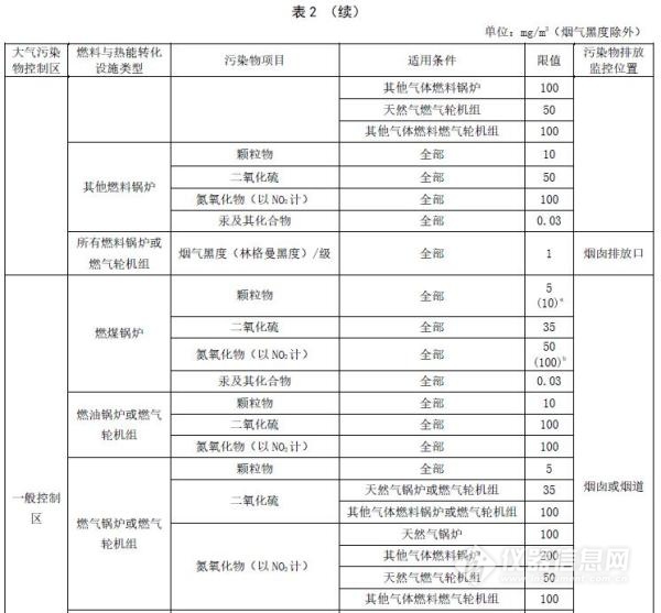 2020年1月1日起,所有火力發(fā)電鍋爐或燃?xì)廨啓C(jī)組按所在控制區(qū)執(zhí)行表2中的排放濃度限值。