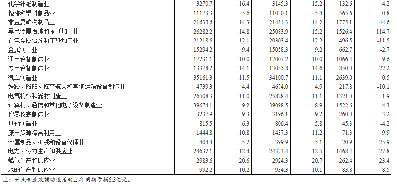 1-5月份,采礦業(yè)實現(xiàn)利潤總額2333.6億元,同比增長41.6%;制造業(yè)實現(xiàn)利潤總額23150.1億元,增長13.8%;電力、熱力、燃氣及水生產(chǎn)和供應(yīng)業(yè)實現(xiàn)利潤總額1814.6億元,增長26.1%。