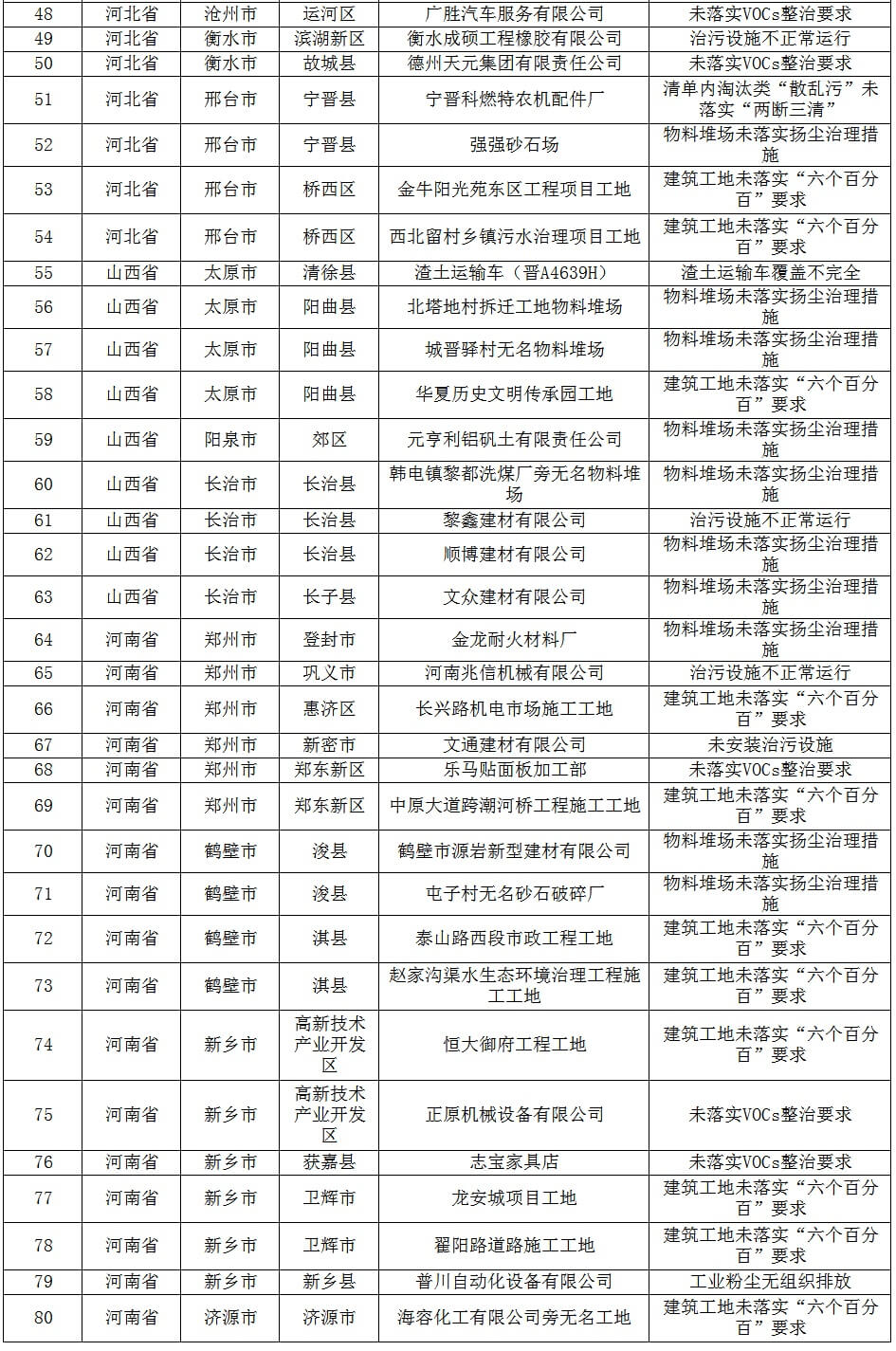 督查組檢查發(fā)現(xiàn),3家清單內(nèi)涉氣“散亂污”企業(yè),存在整改不到位問題。其中,河北省唐山市開平區(qū)1家,保定定州市1家,邢臺(tái)市寧晉縣1家。