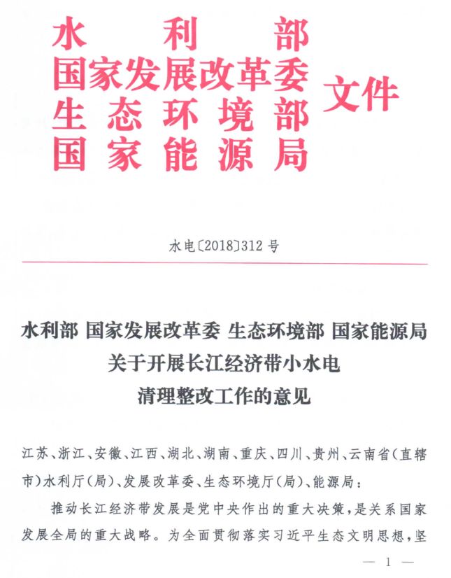 四部委:關(guān)于開展長江經(jīng)濟(jì)帶小水電清理整改工作的意見
