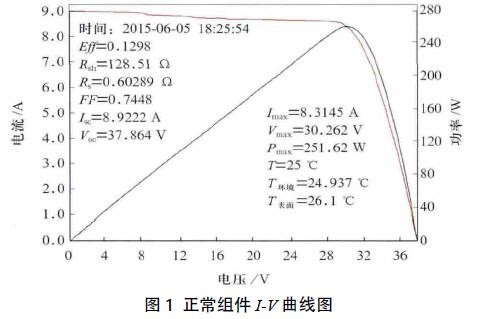 隨機(jī)選取一塊質(zhì)量正常組件,組件內(nèi)所有電池的衰減基本一致,對(duì)其進(jìn)行功率測(cè)試,I-V曲線平滑曲線如圖1所示。
