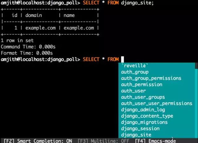 Mycli 的另一個明星功能是智能完成,允許通過輸入前幾個字符來從上下文相關列表中選擇表名和列名。不需要因為忘記 WHERE 子句中列的名稱而放棄當前輸入運行 SHOW CREATE TABLE。