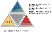 延展咨詢專家唐志明先生認(rèn)為,企業(yè)的應(yīng)用集成分為三個(gè)層次,而且每個(gè)層次的意義和目的不相同,如圖所示: