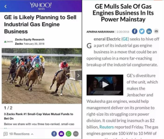 此前廣為傳播的《GE公司計(jì)劃以20億美元出售其工業(yè)燃?xì)廨啓C(jī)業(yè)務(wù)》一文是根據(jù)路透社等外媒報(bào)道的《GE is Likely Planning to Sell Industrial Gas Engine Business》、《GE Mulls Sale Of Gas Engines Business In Its Power Mainstay》等文而來(lái):