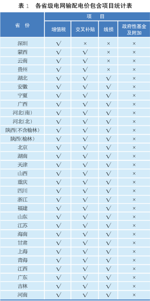 已公布省級電網(wǎng)輸配電價均含增值稅,但不含政府性基金及附加;除深圳外,均含交叉補貼;除初期核定輸配電價的深圳、內(nèi)蒙古、云南、貴州 4 省市外,后期核定的均含線損。由此可以推斷即將出臺的其他省網(wǎng)輸配電價包含項目將基本固定,均含增值稅、交叉補貼、線損,不含政府性基金及附加。各省級電網(wǎng)輸配電價包含項目見表 1。