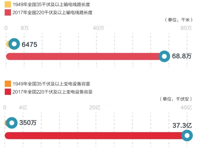 事實證明,只有全國一張網(wǎng)、一盤棋,才能實現(xiàn)更大范圍內(nèi)的資源優(yōu)化配置,西電東送、北電南供才能實現(xiàn)。從1978年到2017年,220千伏及以上輸電線路長度增長了29倍,變電容量增長了147倍。
