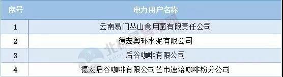 圖表:云南被取消并暫停電力交易的名單