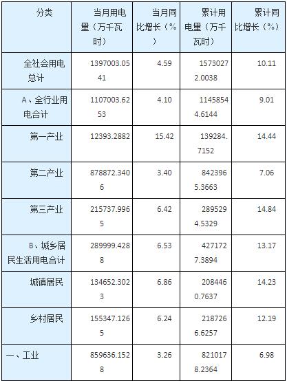 各行業(yè)用電量當(dāng)月及累計增長情況具體見下表: