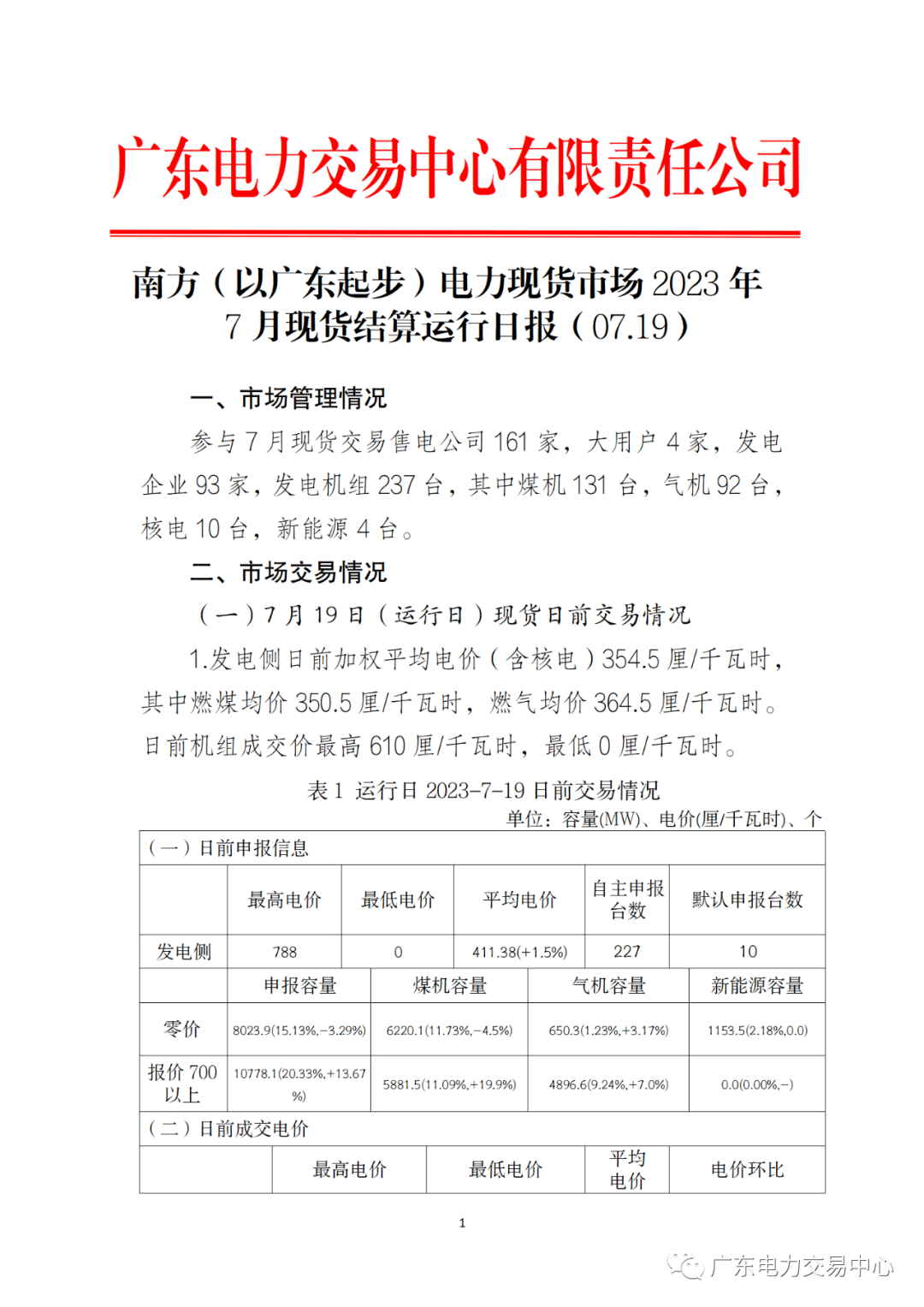 2023年7月19日南方(以廣東起步)電力現(xiàn)貨市場結(jié)算運行日報