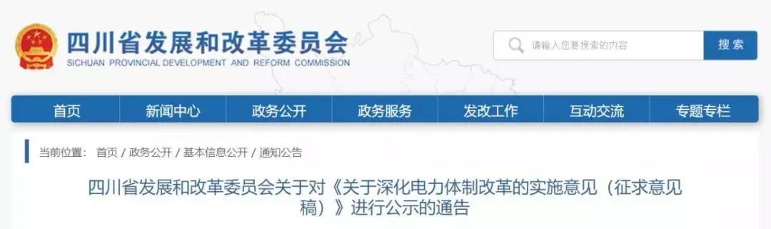 四川關(guān)于《關(guān)于深化電力體制改革的實(shí)施意見(jiàn)(征求意見(jiàn)稿)》進(jìn)行公示的通告