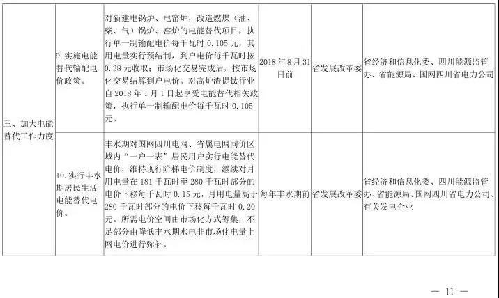 9.實(shí)施電能替代輸配電價(jià)政策。對(duì)新建電鍋爐、電窯爐,改造燃煤(油、柴、氣)鍋爐、窯爐的電能替代項(xiàng)目,執(zhí)行單一制輸配電價(jià)每千瓦時(shí)0.105元,其用電量實(shí)行預(yù)結(jié)制,到戶電價(jià)每千瓦時(shí)按0.38元收取;市場(chǎng)化交易完成后,按市場(chǎng)化交易結(jié)算到戶電價(jià)。對(duì)高爐渣提鈦行業(yè)自2018年1月1日起享受電能替代相關(guān)政策,執(zhí)行單一制輸配電價(jià)每千瓦時(shí)0.105元。