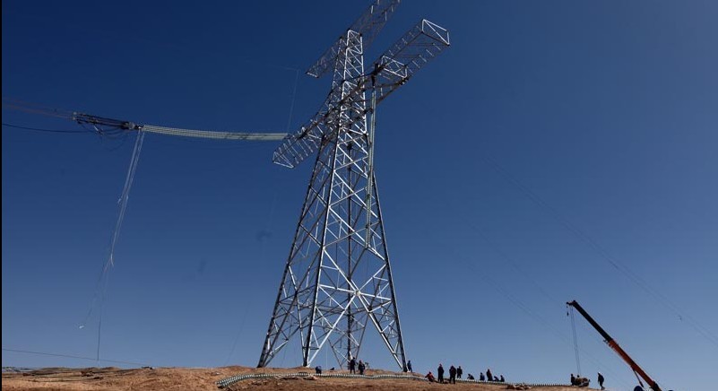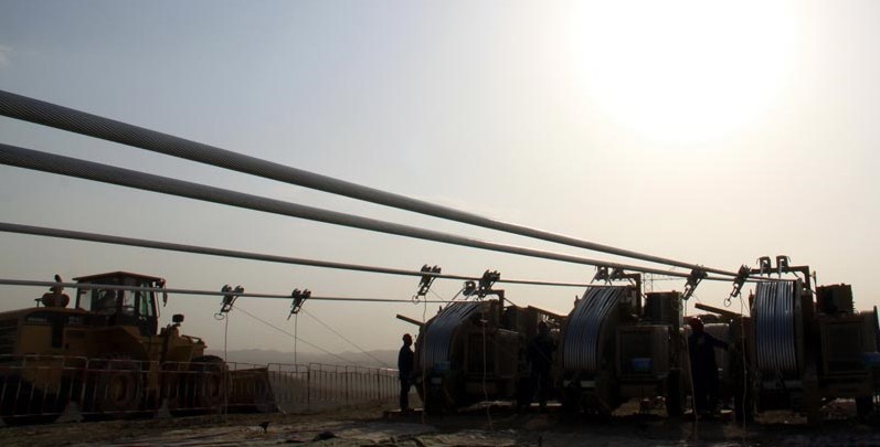 哈鄭±800千伏特高壓直流輸電線路寧夏段導(dǎo)線展放完畢