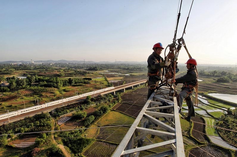 在安徽合肥地區(qū),經(jīng)過湖北省送變電工程公司員工2天夜以繼日的緊張奮戰(zhàn),皖電東送工程4標(biāo)段跨越合肥—武漢客運(yùn)專線鐵路封網(wǎng)工作順利完成,開始牽引第一根導(dǎo)線,標(biāo)志著此標(biāo)段施工難度最大的區(qū)段架線攻堅戰(zhàn)正式拉