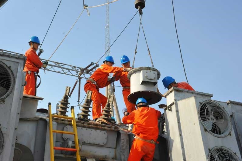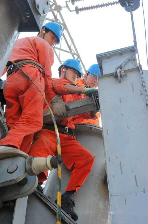 老式主變壓器的冷卻器拆卸起來容易,裝起來卻很難,高度傾斜度都剛剛好的時(shí)候才能裝的上,徐海林一邊指揮吊車,一邊指揮作業(yè)人員,“向上點(diǎn),再上一點(diǎn)兒,一點(diǎn)兒,稍左,小鉤提升,再提,好,好,好!”下午13時(shí)50分,整整四個(gè)小時(shí)過去了,六組冷卻器全部裝配到位,徐海林的嗓子也啞了。