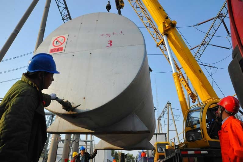 早晨7時(shí),按檢修工區(qū)主任高紅英的提議,作業(yè)人員首先將兩個(gè)大油罐吊裝到位,主變里的油需要抽出來重新過濾,然后再將主變腔體抽成真空的情況下重新注入,這是一個(gè)漫長的過程,他們要一邊進(jìn)行這個(gè)工作,一邊完成其他的工作比如冷卻器等附件的安裝,這樣能節(jié)省至少八個(gè)小時(shí)的時(shí)間,在她看來,主變就位,能往前趕一個(gè)小時(shí),就為電網(wǎng)安全保障一個(gè)小時(shí)。