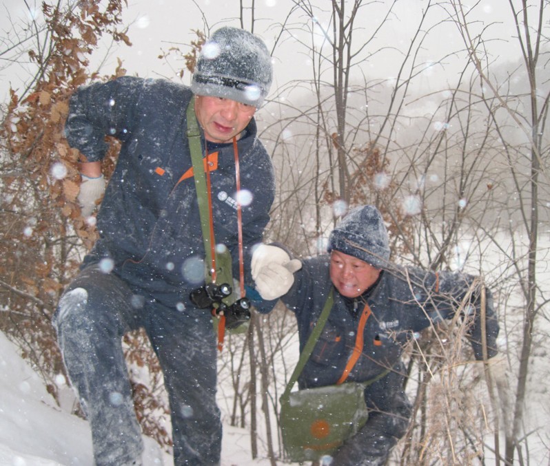 哈爾濱電業(yè)局輸電運(yùn)檢工區(qū)五常保線站的巡線工王曉東、蘇洪秋正在冒雪對(duì)轄區(qū)220千伏五阿線進(jìn)行防凍害特巡。當(dāng)天,冰城哈爾濱普降大雪,氣溫降到了零下十多度,并伴有五級(jí)以上的大風(fēng)。為了確保惡劣天氣下線路的安全可靠運(yùn)行,當(dāng)天一大早,五常保線站的巡線工們便攜帶著望遠(yuǎn)鏡、工具包等裝備,開(kāi)始對(duì)處于大山深處易發(fā)生冰雪災(zāi)害的220千伏五阿線的第71號(hào)至92號(hào)桿塔進(jìn)行特巡。