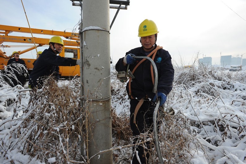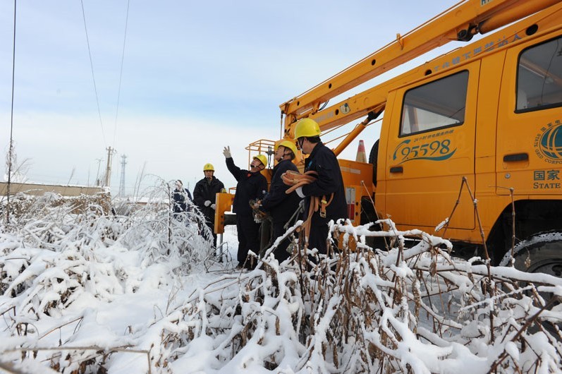 鞍山供電公司6名一線工作人員在市郊10千伏魏家屯線8號(hào)變壓器臺(tái)處,緊急處理因?yàn)楸┭?dǎo)致的短路事故。據(jù)了解,12月3日鞍山地區(qū)電網(wǎng)受到暴雪災(zāi)害侵襲,鞍山供電公司沉著應(yīng)對(duì),發(fā)揮了“三集五大”后人、財(cái)、物集約優(yōu)勢(shì),組織送、變、配等專業(yè)干部員工,全力排除雪災(zāi)導(dǎo)致的故障,保證了鞍山地區(qū)電網(wǎng)的安全穩(wěn)定運(yùn)行。