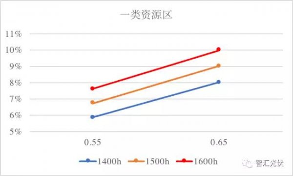 在一類電價區(qū),光伏標桿電價由0.65元/kWh下調(diào)至0.55元/kWh,項目全投資的內(nèi)部收益率會下降2.1%~2.4%。