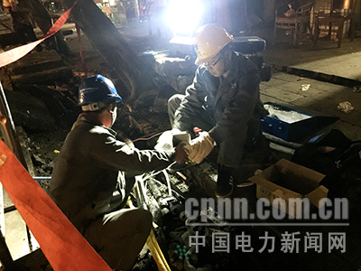 中電新聞網(wǎng)訊 通訊員 況敏 報(bào)道 12月11日下午2點(diǎn),國(guó)網(wǎng)重慶長(zhǎng)壽供電公司鳳城運(yùn)維站接到搶修電話,長(zhǎng)壽黃角灣農(nóng)貿(mào)市場(chǎng)100戶居民和創(chuàng)業(yè)街12個(gè)門面出現(xiàn)用電故障,已經(jīng)無(wú)法正常供電。10分鐘后,鳳城運(yùn)維站和搶修班共15名員工緊急出動(dòng)到達(dá)了搶修地點(diǎn),為盡快恢復(fù)用電,班長(zhǎng)唐世軍將人員分成兩組,分別負(fù)責(zé)電纜頭制作和鋪設(shè)新電纜,兩組同時(shí)進(jìn)行,提高搶修效率。經(jīng)過(guò)近7個(gè)小時(shí)的酣戰(zhàn),搶修工作順利完成,用電恢復(fù)正常。