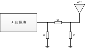X1,X2,X3都是電抗元件,如果天線是標(biāo)準的50歐姆阻抗,那么X2,X3可以不焊接,X1接220PF電容或者0歐姆電阻。在PCB設(shè)計時,這三個器件已經(jīng)盡量靠近模塊的射頻輸出腳,并且連接的傳輸線短且直。匹配元件的周圍1.5mm區(qū)域內(nèi)不要鋪地,以減少寄生參數(shù)對匹配電路的影響。