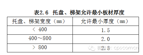 橋架產(chǎn)品包裝箱內(nèi)應有裝箱清單、產(chǎn)品合格證及出廠檢驗報告。托盤、梯架板材厚度應滿足表2.6的規(guī)定。表面防腐層材料應符合國家現(xiàn)行有關標準的規(guī)定。