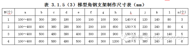 表 3.1.5(3)梯型角鋼支架制作尺寸表(mm)