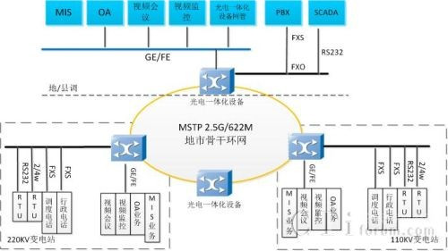采用光電一體化設(shè)備應(yīng)用于電力通信網(wǎng)接入層組網(wǎng)示意圖如圖 2: