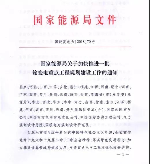 近日,國(guó)家能源局印發(fā)《關(guān)于加快推進(jìn)一批輸變電重點(diǎn)工程規(guī)劃建設(shè)工作的通知》(以下簡(jiǎn)稱《通知》)國(guó)能發(fā)電力〔2018〕70號(hào),為加大基礎(chǔ)設(shè)施領(lǐng)域補(bǔ)短板力度,發(fā)揮重點(diǎn)電網(wǎng)工程在優(yōu)化投資結(jié)構(gòu)、 清潔能源消納、電力精準(zhǔn)扶貧等方面的重要作用,加快推進(jìn)白鶴灘至江蘇、白鶴灘至浙江特高壓直流等9項(xiàng)重點(diǎn)輸變電工程建設(shè)。項(xiàng)目包括了12條特高壓工程,合計(jì)輸電能力5700萬千瓦,將于今明兩年給予審核。