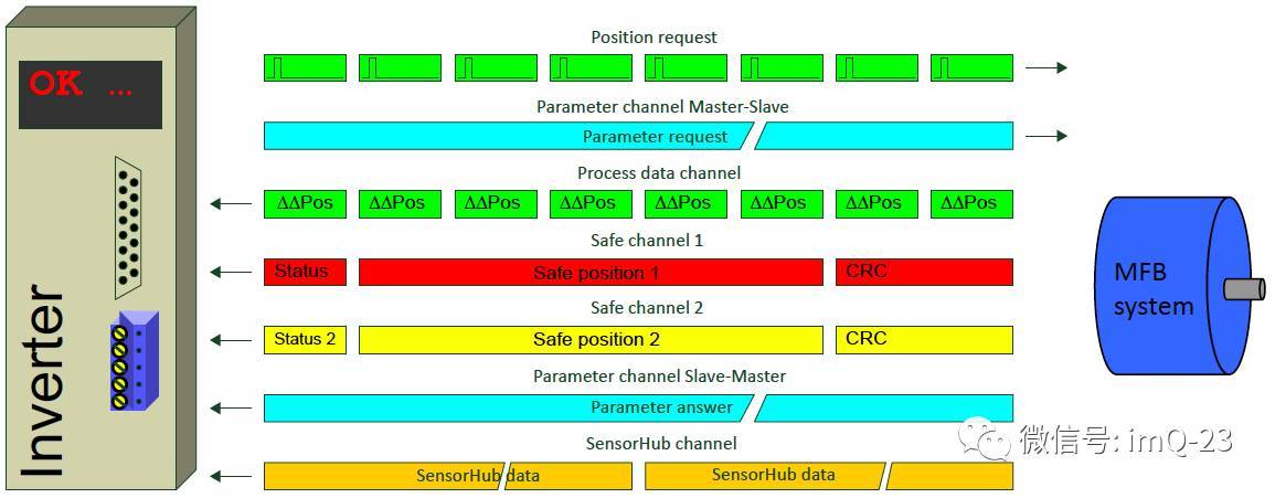 而這些年和在編碼器技術(shù)上的應(yīng)用,已經(jīng)開始讓電機(jī)反饋逐漸突破了通訊速率和數(shù)據(jù)帶寬的限制。比如我們之前提到的 HIPERFACE DSL 伺服反饋協(xié)議,其數(shù)據(jù)傳輸率達(dá)到 9.375MBd,傳輸周期最短僅為 12.1 μs。這讓編碼器在反饋位置、速度...等運(yùn)控信息的同時(shí),還能夠承載更多有關(guān)電機(jī)運(yùn)行狀態(tài)的數(shù)據(jù)信息。
